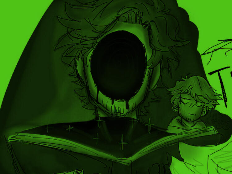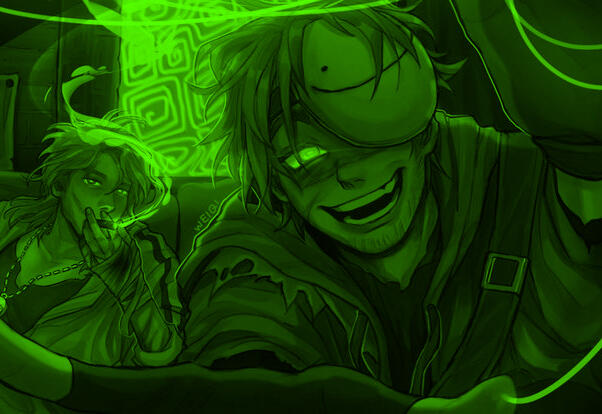 A brooding, unsettling man like him stands at the height of 6'3, with rugged dirty blonde locks, and fair, smooth skin. His facial structure to begin with, is rather feminine for a brooding, tall man like him— aura so quiet that his thoughts are unintelligible to even a mind reader in the flesh. He carries soft, hazel green eyes, decorated beautifully with brown lashes. His gaze though, means nothing other than danger, though, an intense gaze layered over his softer eyes, and eyebrows always fixed into a furrow. All over his face are sunkissed freckles and scattered scars that span from the side of his left cheek to his nose, and a small scar over his eye. These facial features, albeit, are not often revealed unless it is one he puts his trust into, or for the purpose of a scare factor. From then on, his face is disguised with a sunken black void in the middle of his face (speculated to be from the revival book), all extra protected by a smile mask.